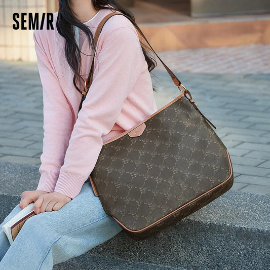 Semir Tote Bag Women 2025 New Style Vintage Monogram Crossbody Bag Popular Shoulder Bag Large-capacity Shopping Bag