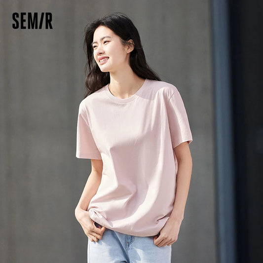Semir Short Sleeve Men T-Shirt Cotton 2024 Summer New Man Clothing Is Thin And Versatile T Shirt Couples Solid Color Bottoming