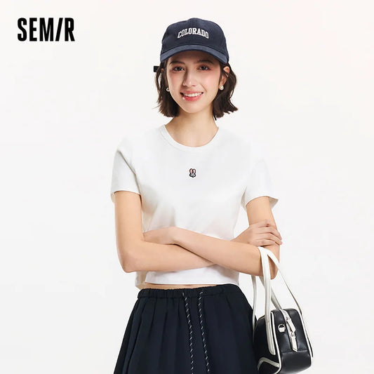 Semir Short Sleeve T-Shirt Women Cropped Slim Fit Slimming 2025 New Summer Embroidered Pullover Cute for Everyday and Stylish