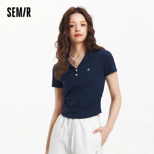 Semir Polo Shirt Women Cropped Blazer Collar 2025 New Summer Embroidered Cool Feeling Slim Fit Top Slimming for Chic Outfits