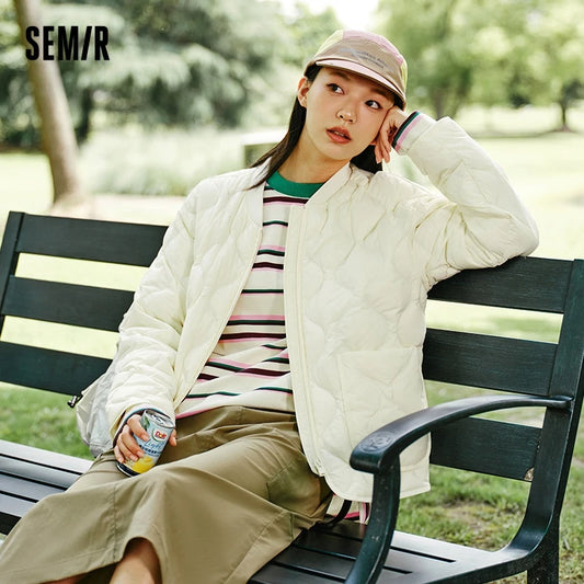 Semir Down Jacket Women Solid Color Three-Proof Loose Casual Style New Winter 2024 Lazy Baseball Collar Lightweight Coat