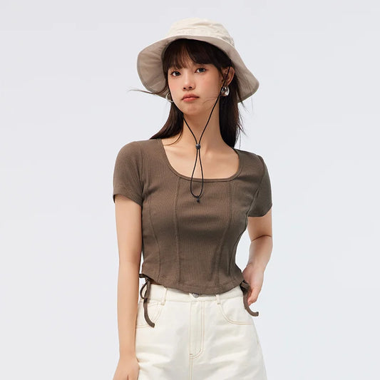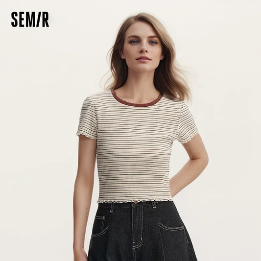 Semir Short Sleeve T Shirt Women Short Tight Knit Sexy 2023 Summer New Solid Fishbone Tops For Woman
