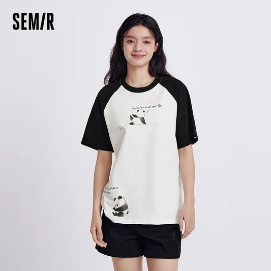 Semir Short Sleeve T-Shirt Women Mid-long Style Raglan Sleeve Loose 2025 New Version Panda-themed Pure Cotton Summer Outfit