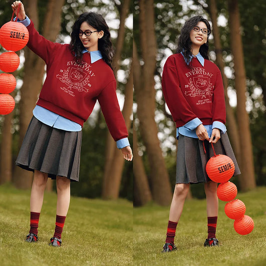 Semir Hoodie Women Design-featured Embroidered Loose and Lazy 2025 New Spring Round-neck Drop-shoulder Pullover Fashionable