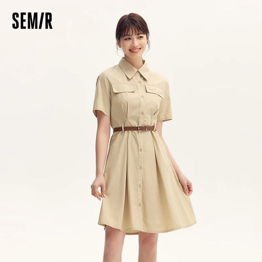 Semir Dress Women Pure Cotton Fashionable and Elegant 2025 New Summer Version Slimming and Waist-tightening Shirt Dress