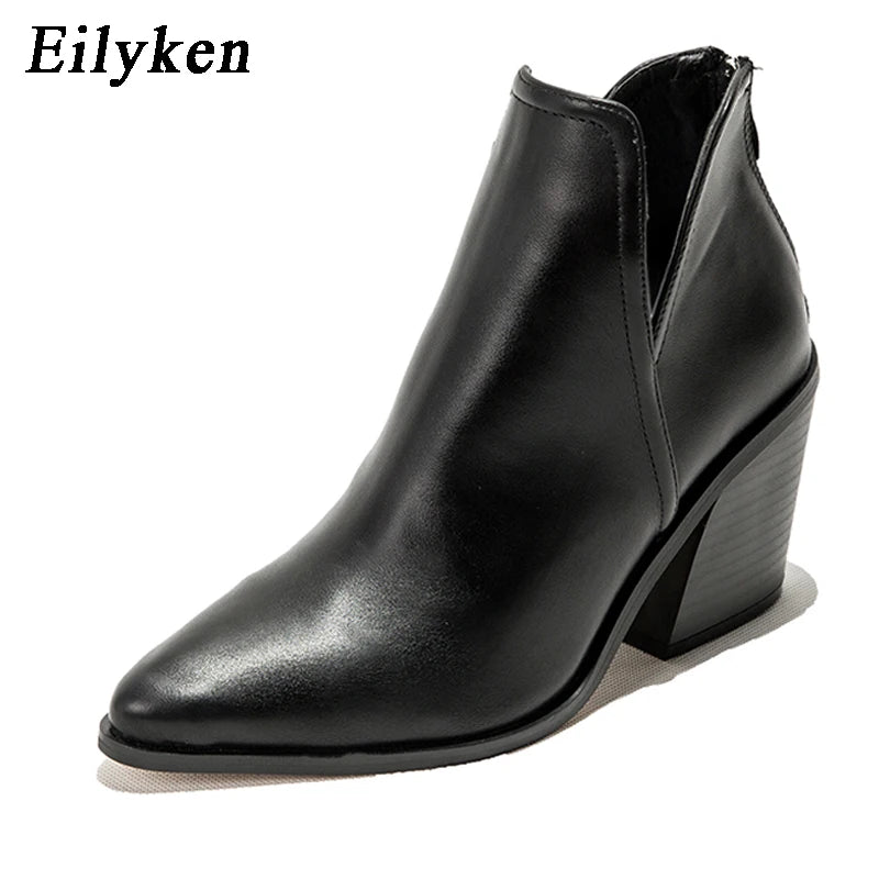 EilyKen Autumn/Winter Western Cowboy Ankle Boots for Women, Snake Print Cowgirl Booties, High Heel Cossacks.
