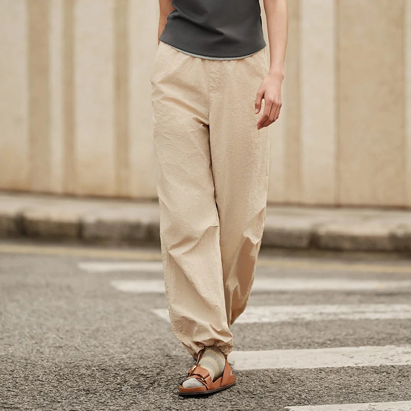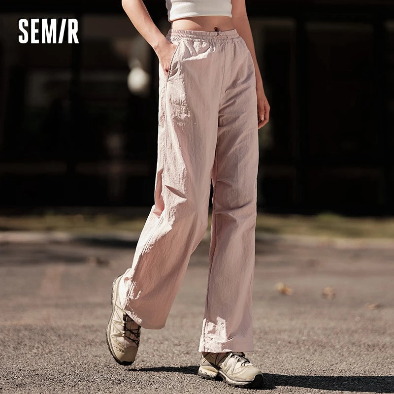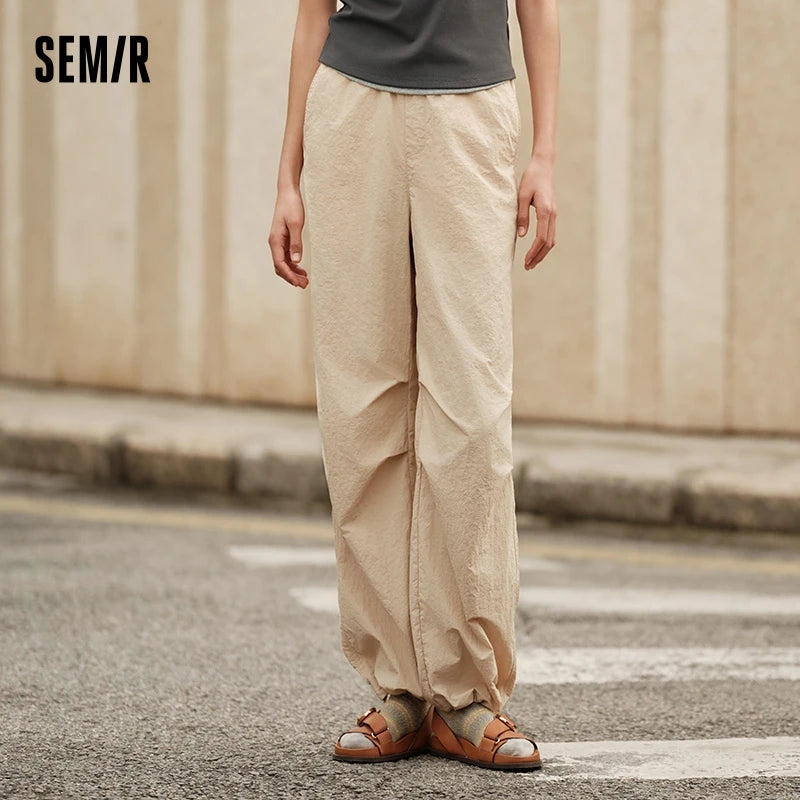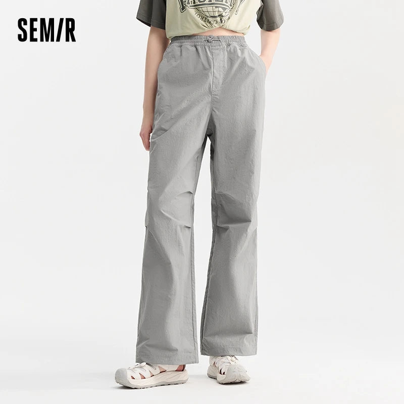Semir Casual Trousers Women Elastic Waist Solid Colour Texture Trousers 2024 Summer New Sunscreen Wide-Leg Trousers Tide Cool St