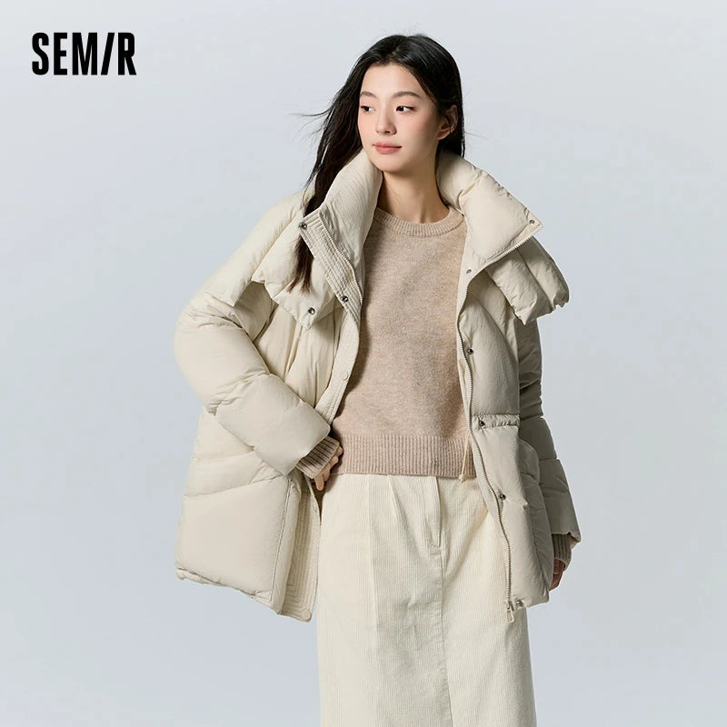 Semir Down Jacket Women Medium Length Loose 2023 New Textured Warm Winter Wear