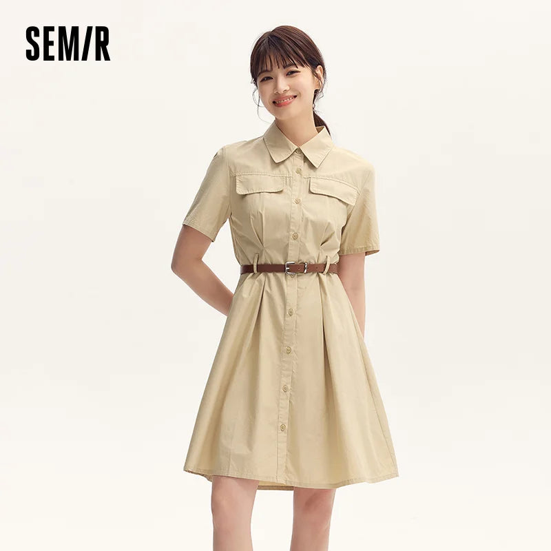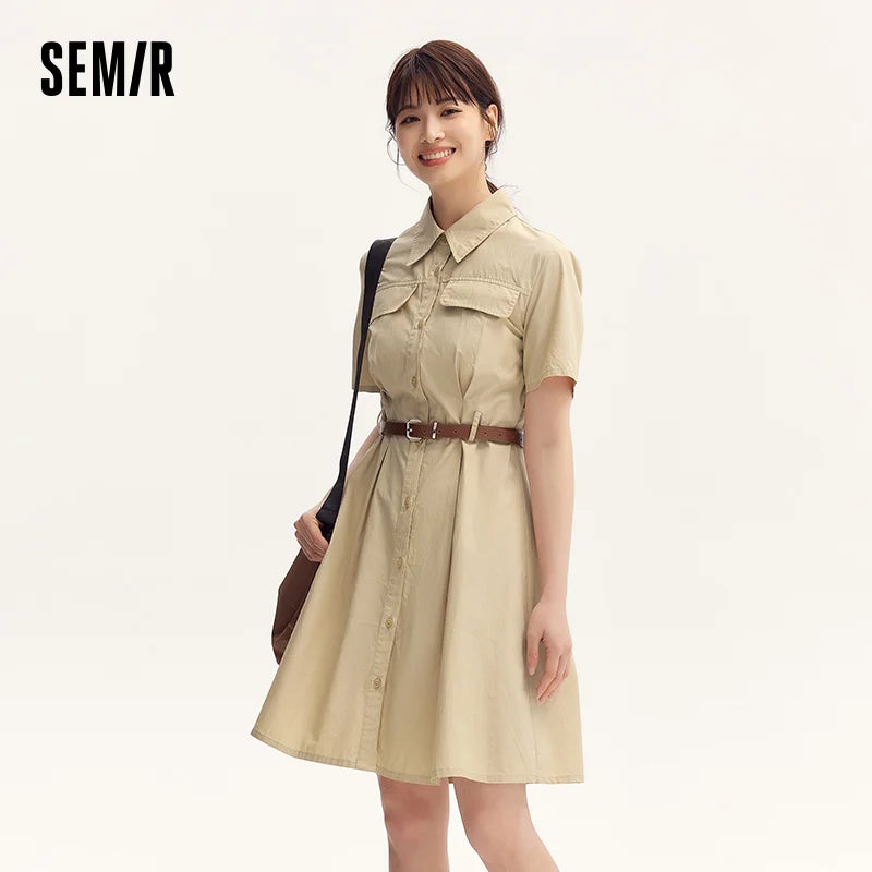 Semir Dress Women Pure Cotton Fashionable and Elegant 2025 New Summer Version Slimming and Waist-tightening Shirt Dress