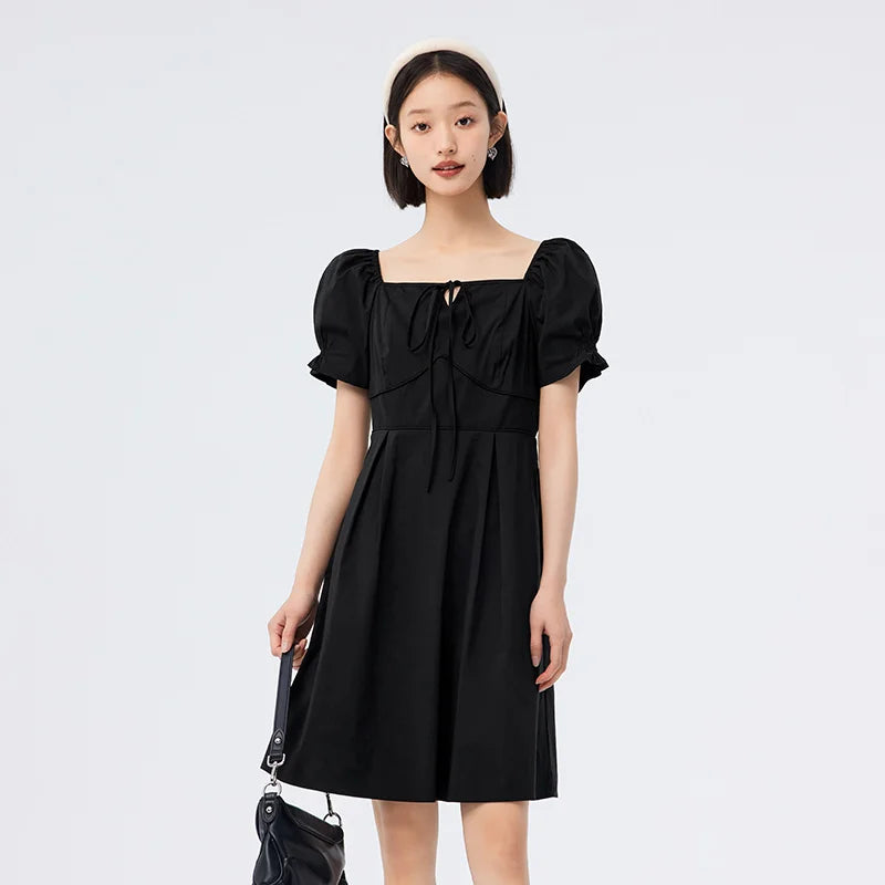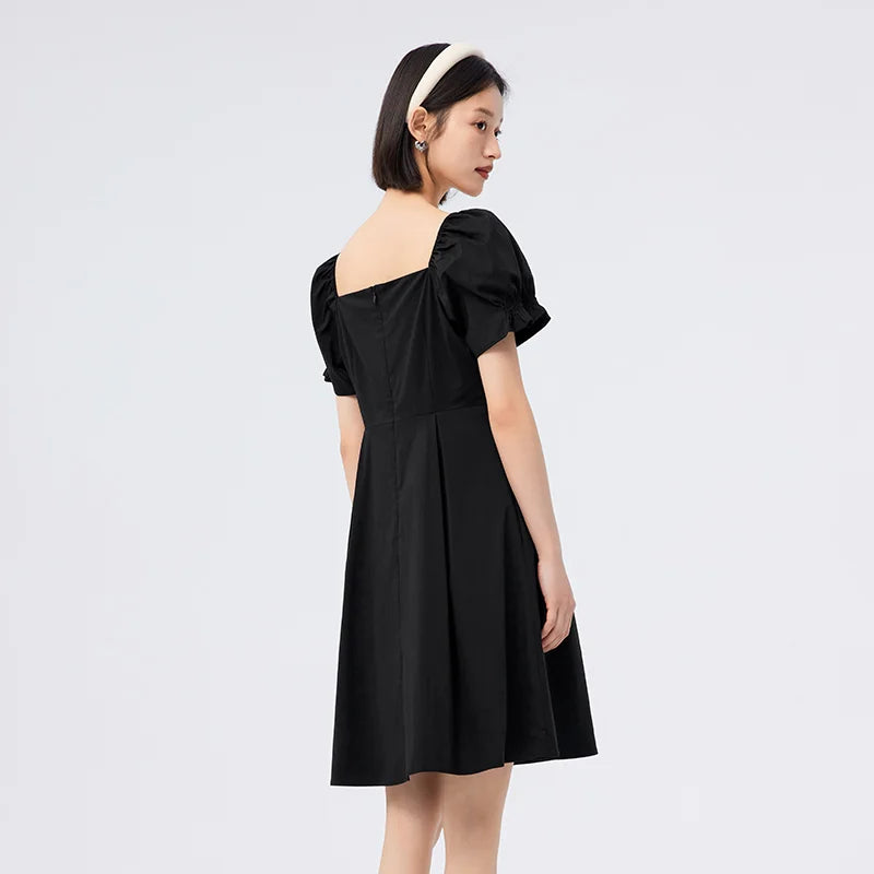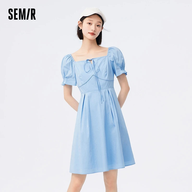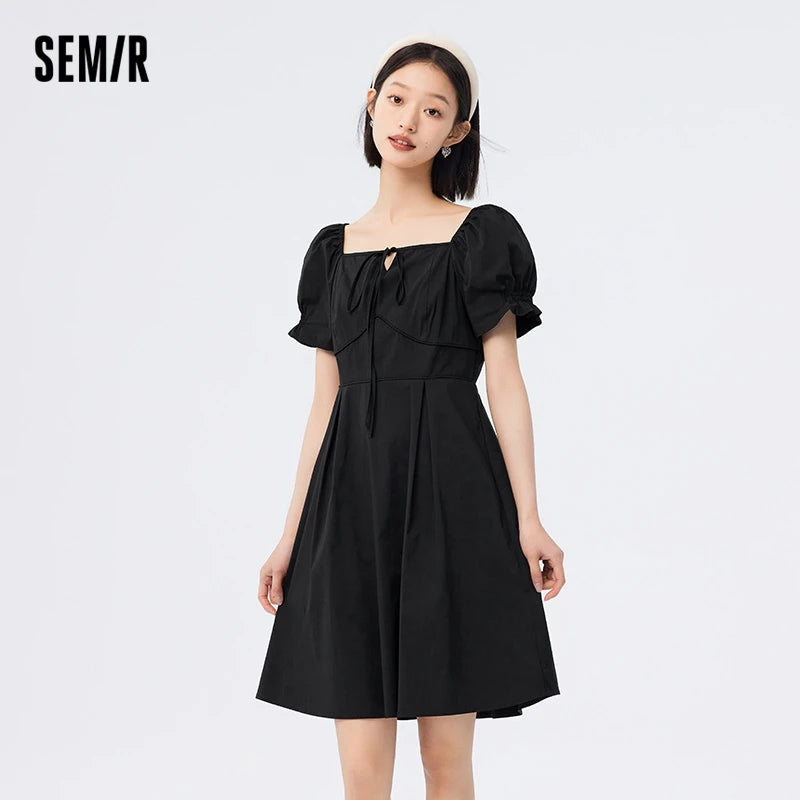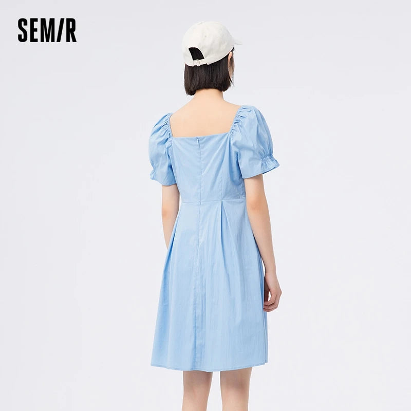 Semir Dress Women Solid Color Feel Versatile 2025 Summer New Fashion Square Neck Short Dress Women'S Elegant