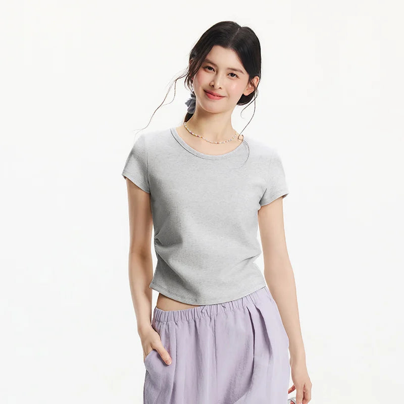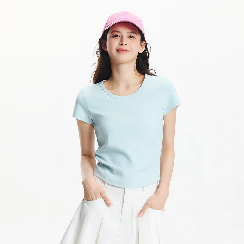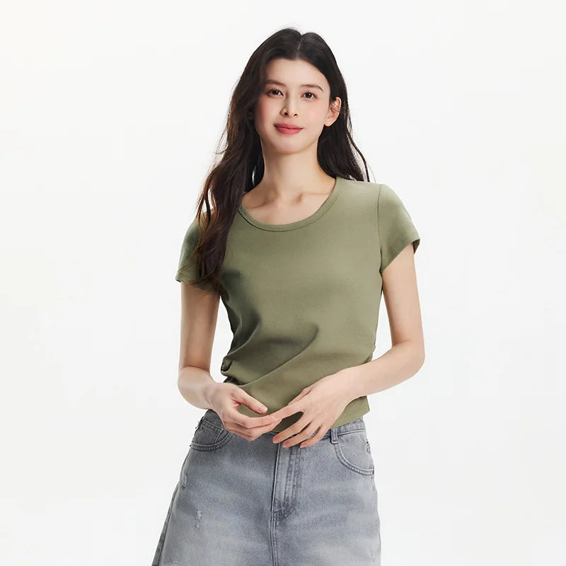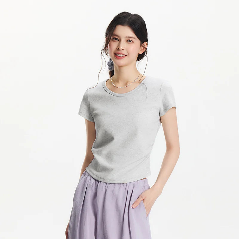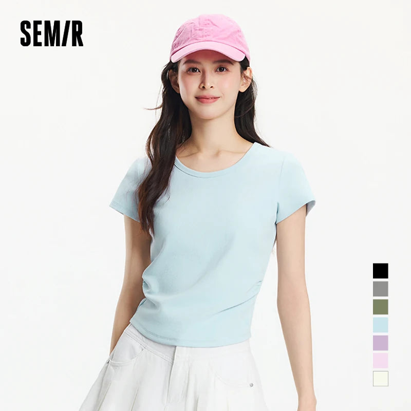 Semir Short Sleeve T-Shirt Women Cropped Slim Fit Shoulder Fit Design 2025 New Summer Embroidered Top Versatile for Chic Outfits
