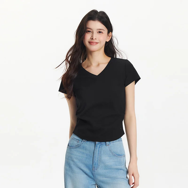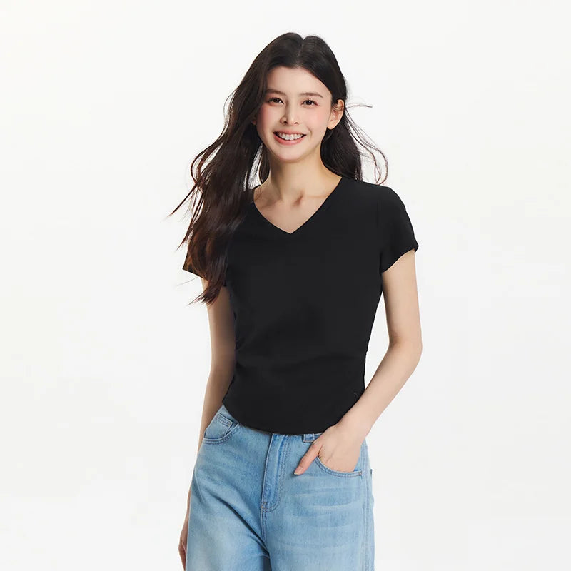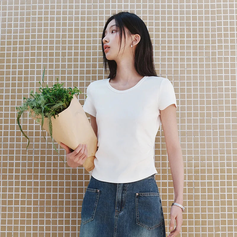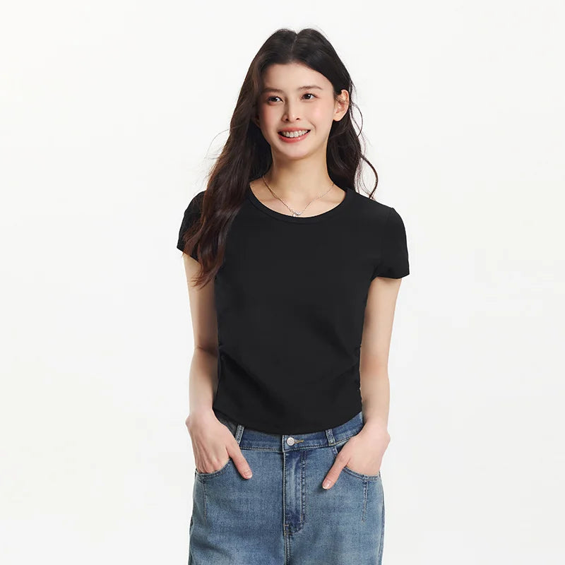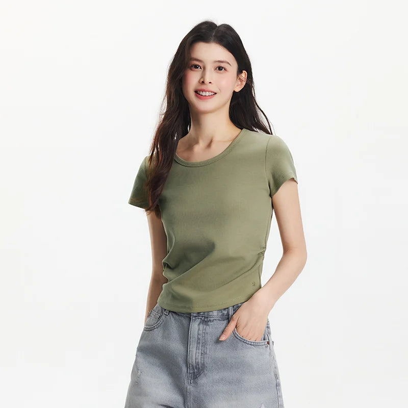 Semir Short Sleeve T-Shirt Women Cropped Slim Fit Shoulder Fit Design 2025 New Summer Embroidered Top Versatile for Chic Outfits