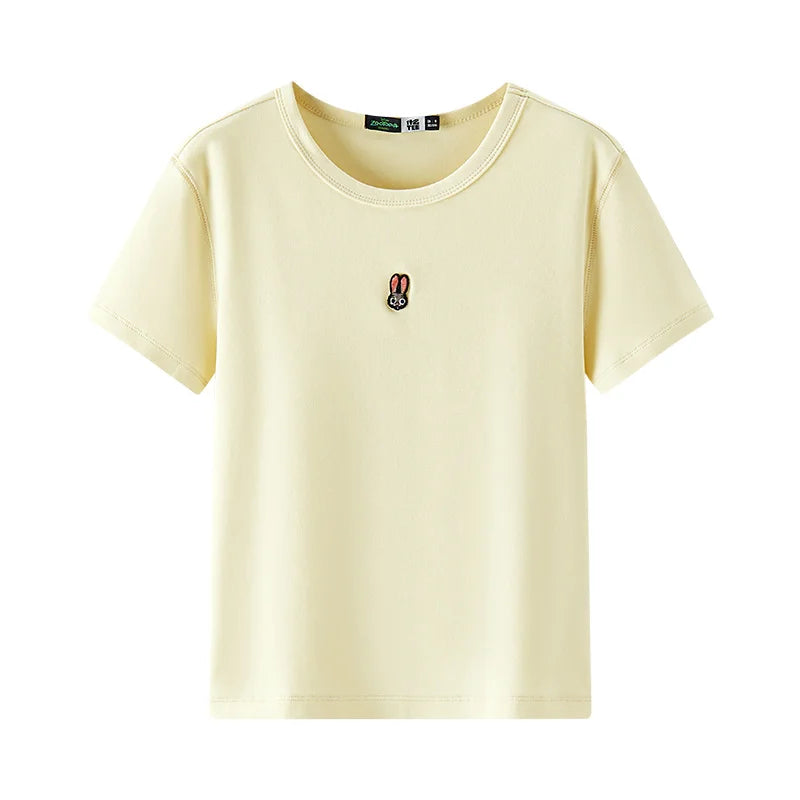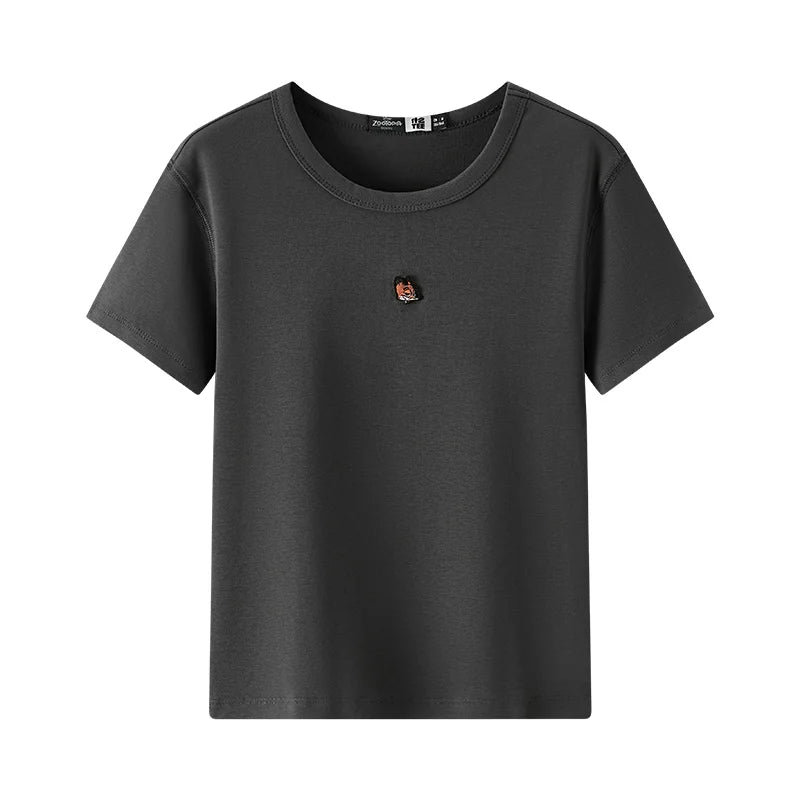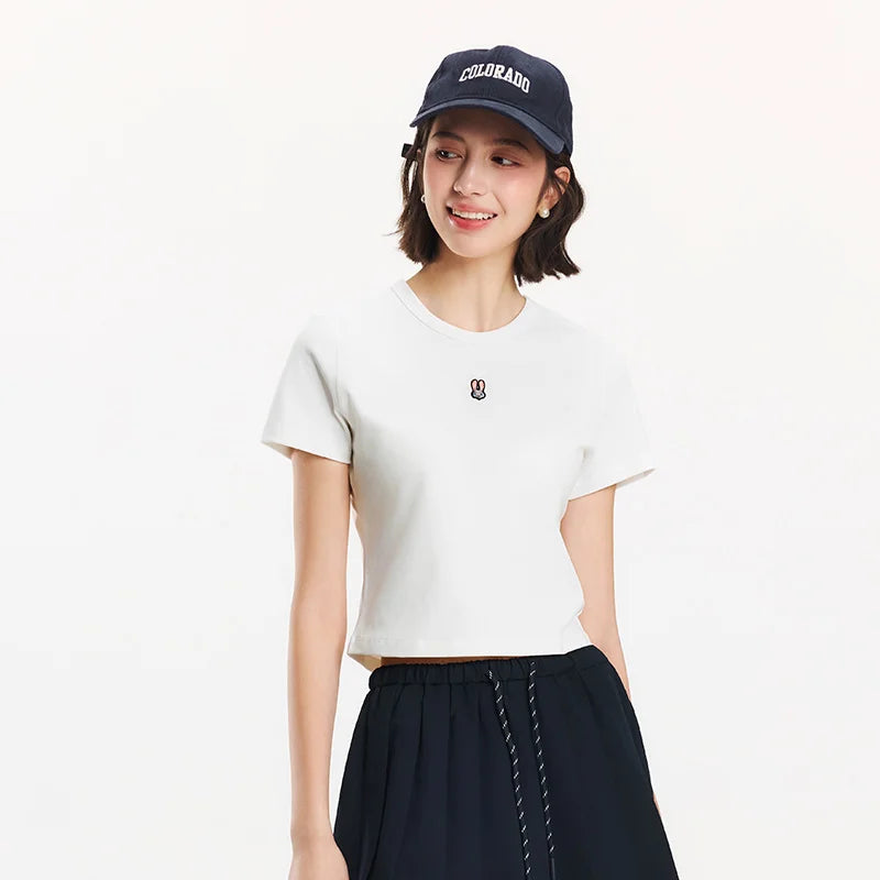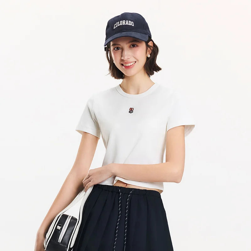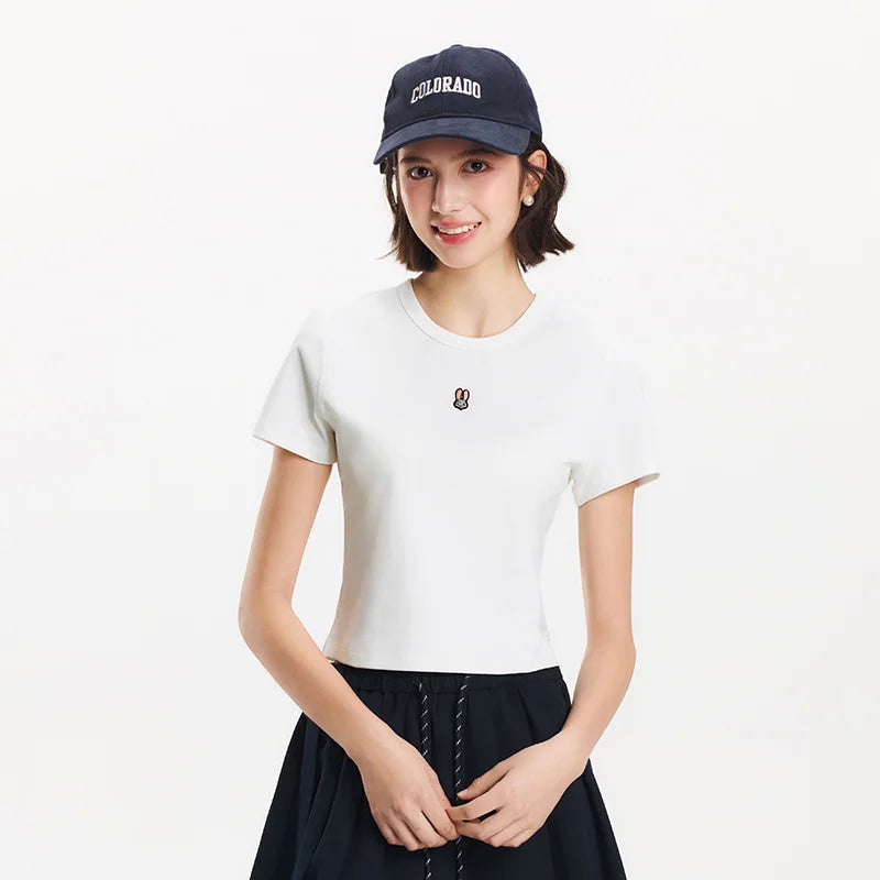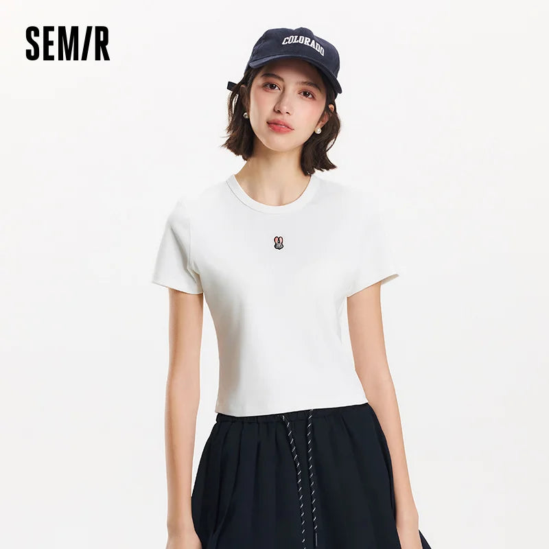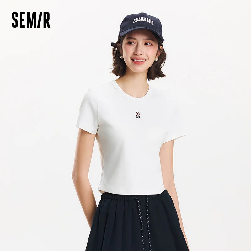 Semir Short Sleeve T-Shirt Women Cropped Slim Fit Slimming 2025 New Summer Embroidered Pullover Cute for Everyday and Stylish