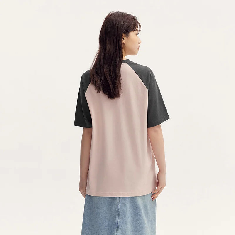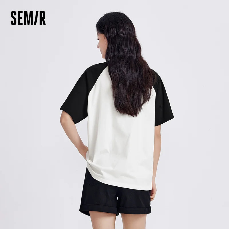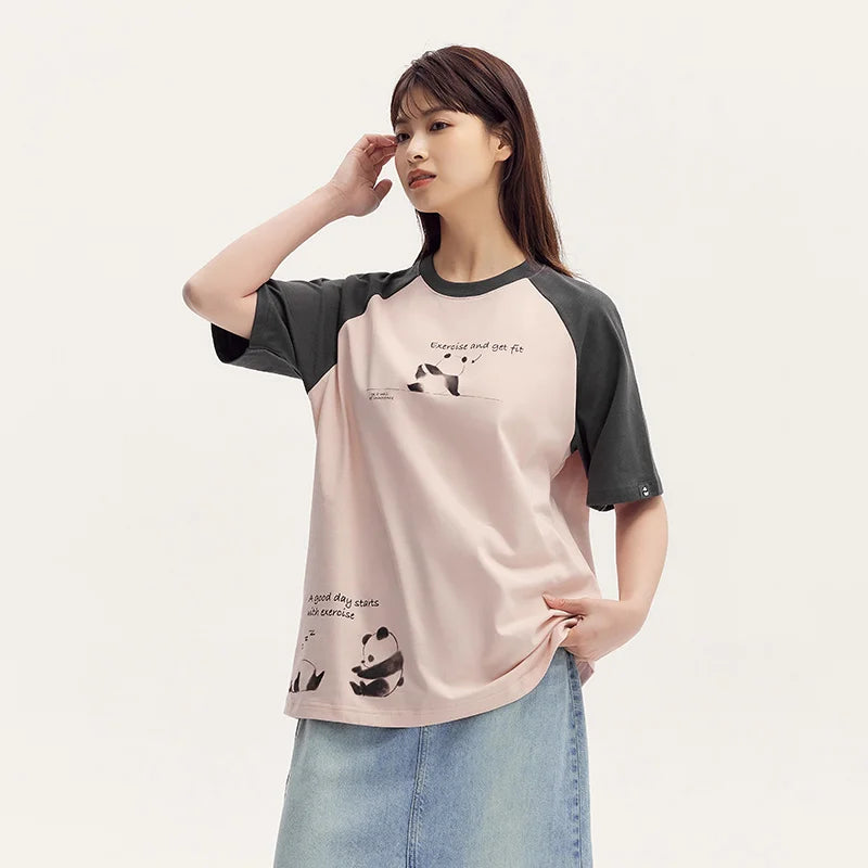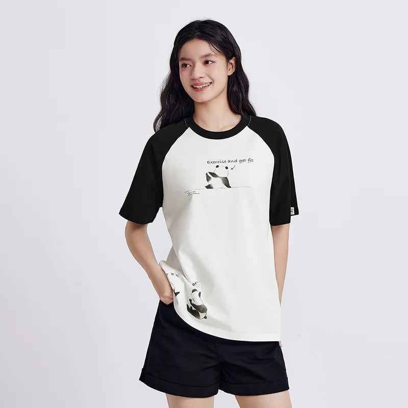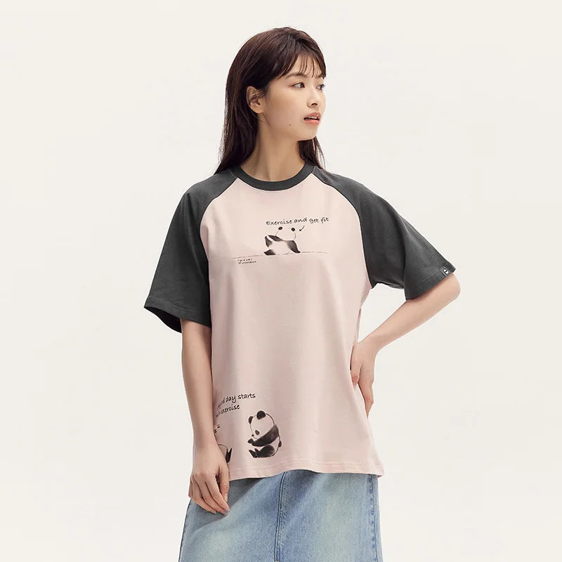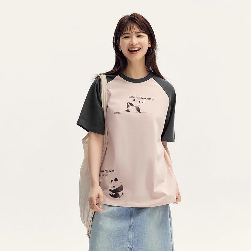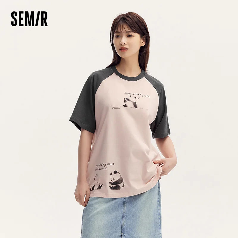 Semir Short Sleeve T-Shirt Women Mid-long Style Raglan Sleeve Loose 2025 New Version Panda-themed Pure Cotton Summer Outfit