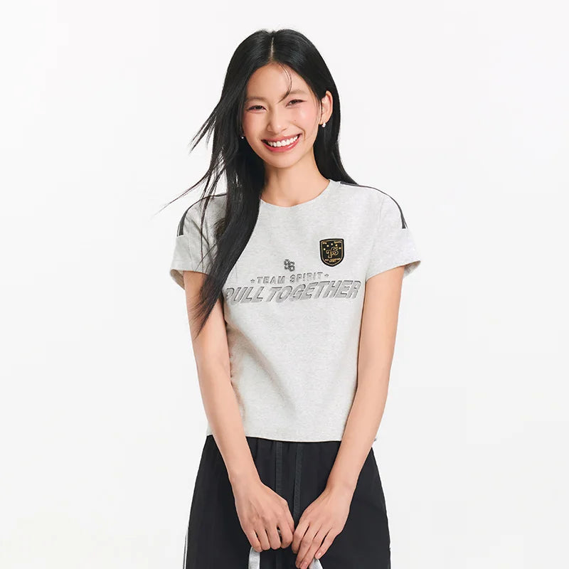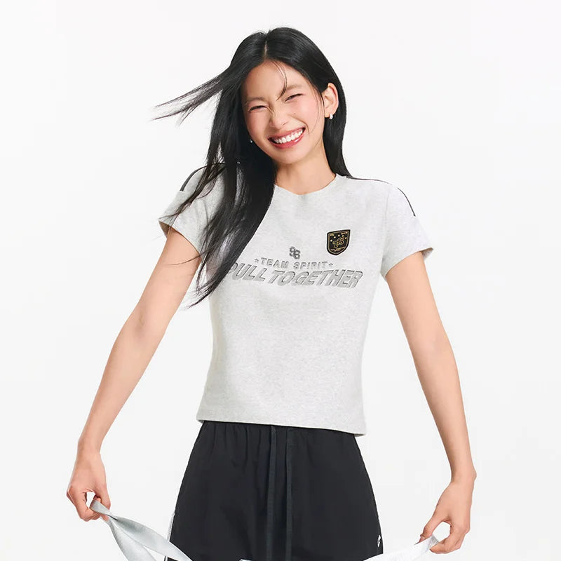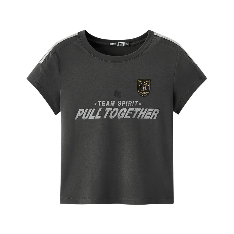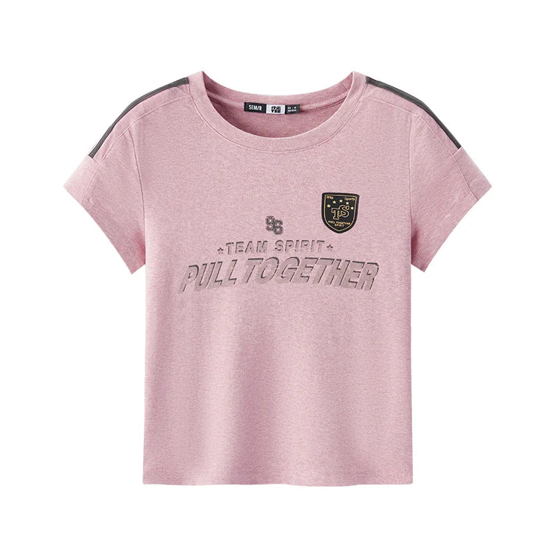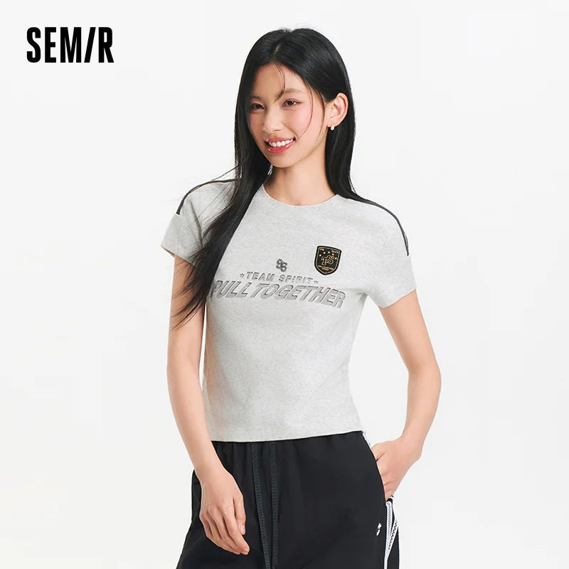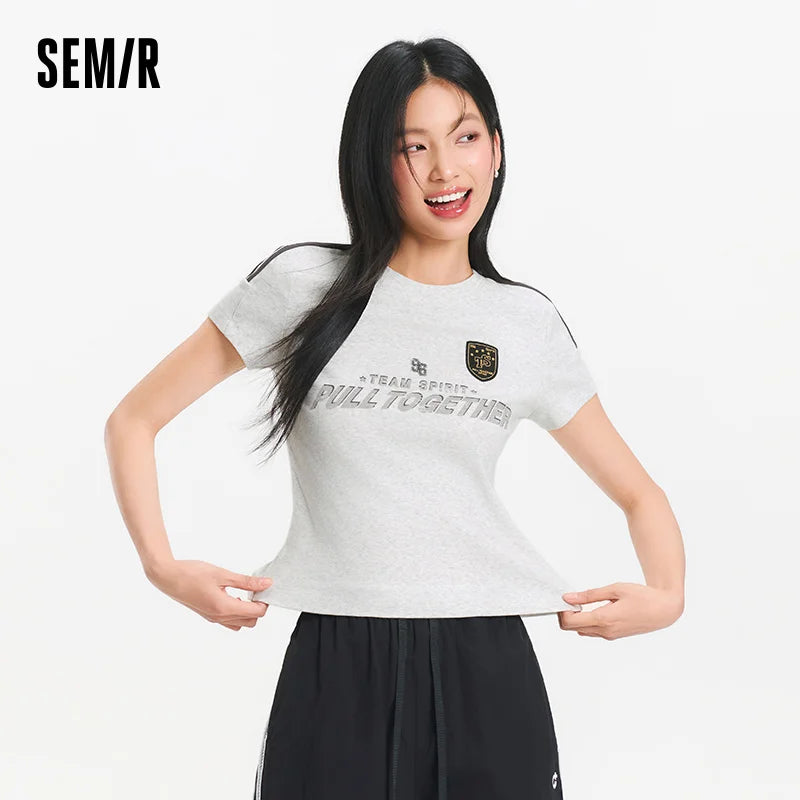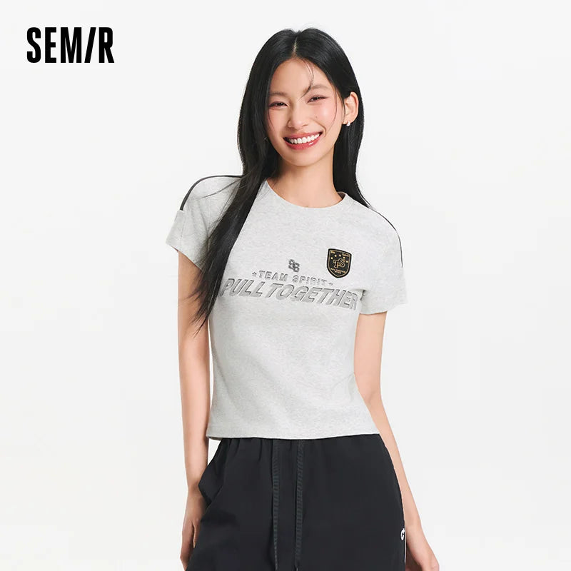 Semir Short Sleeve T-Shirt Women Short Style Slim Fit with Letters 2025 New Summer Style Regular Shoulder Top in a Sporty Style