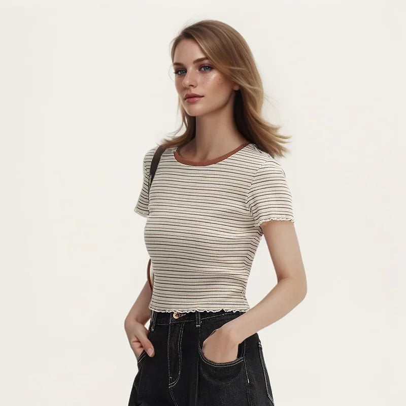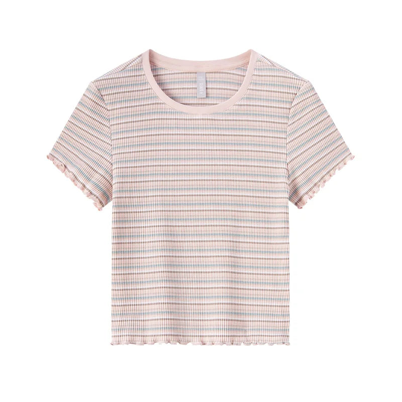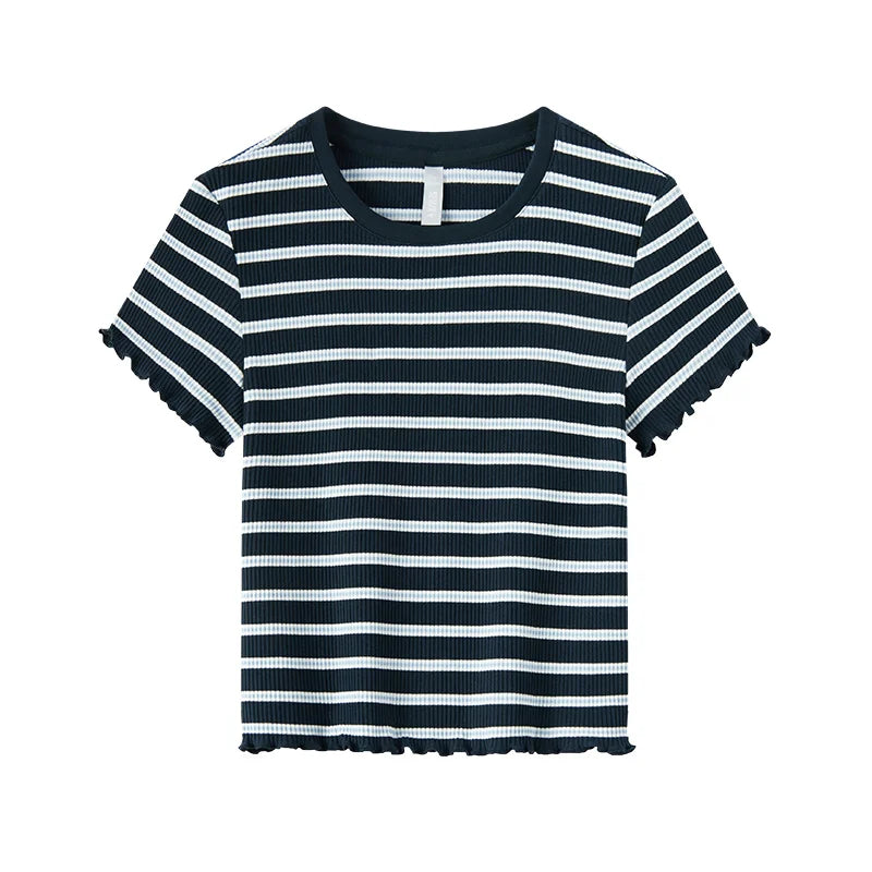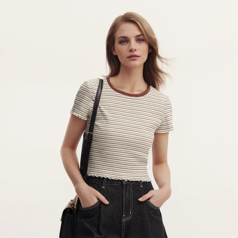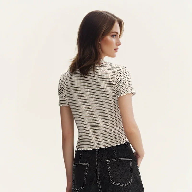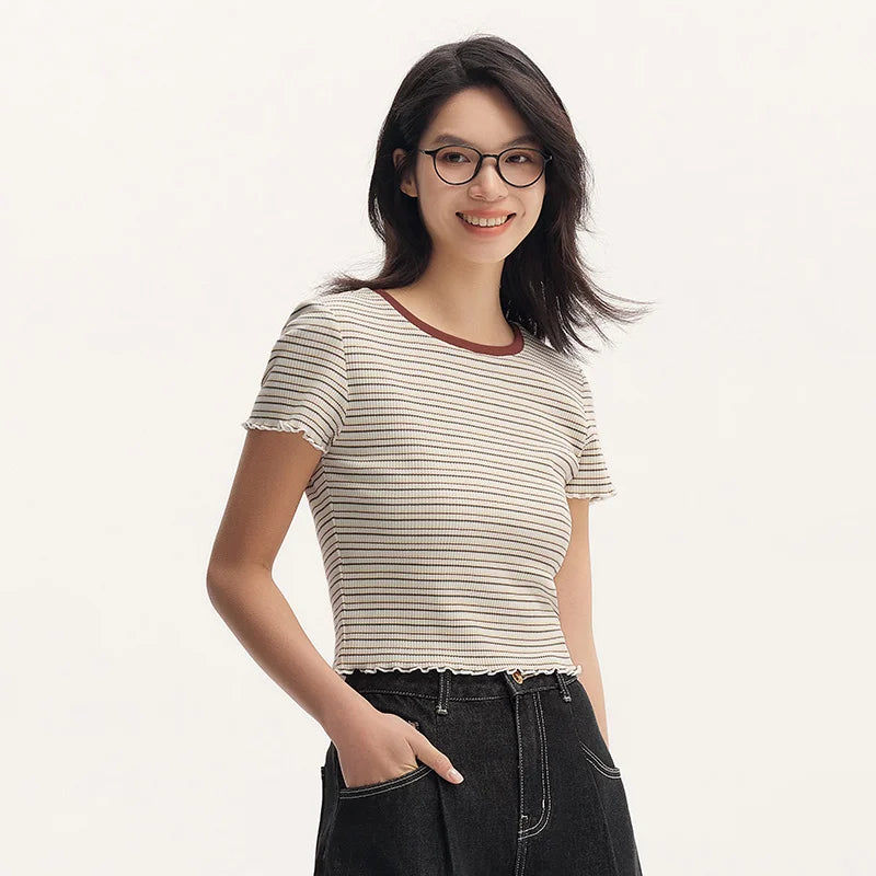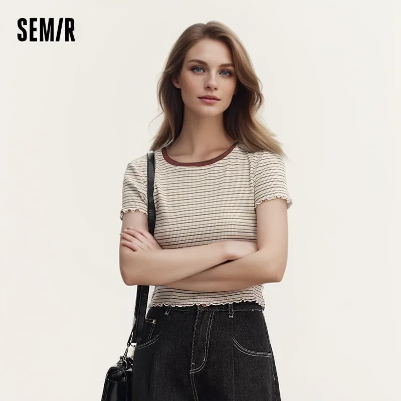 Semir Short-Sleeved T-Shirt For Women Short And Slimming With Ruffled Edges New In 2024 Summer Striped Top