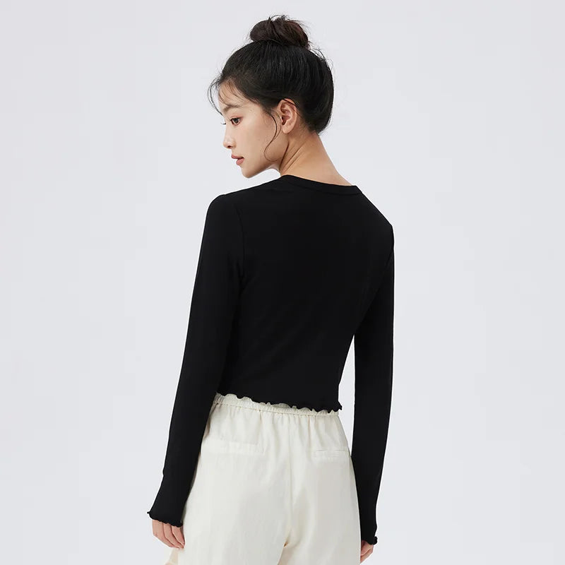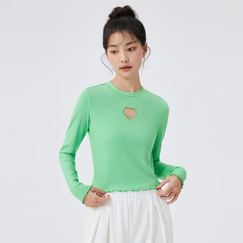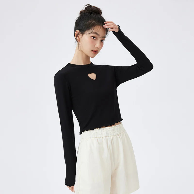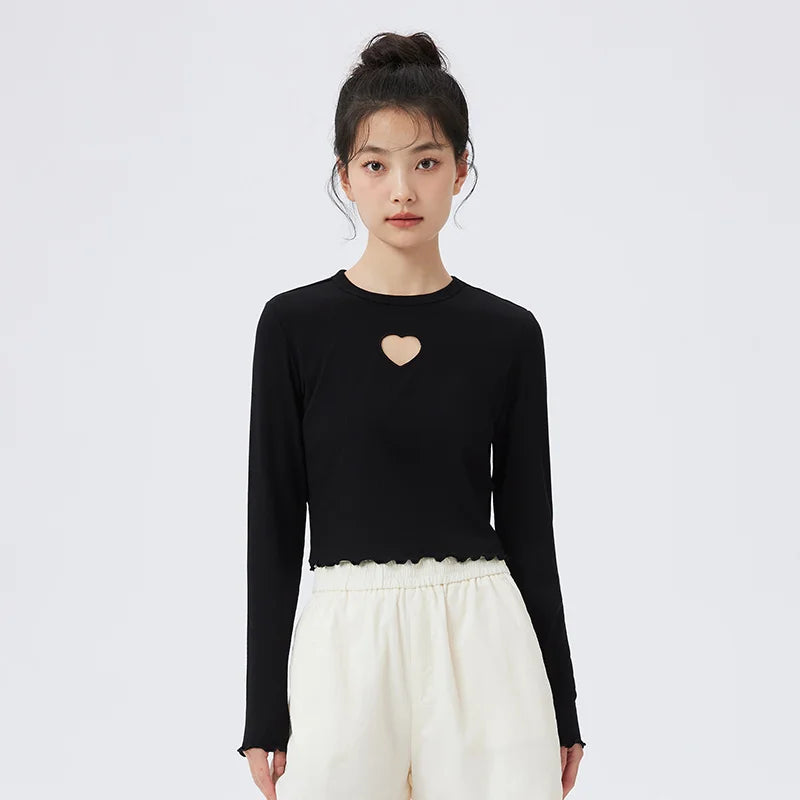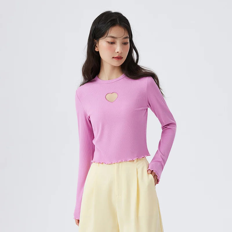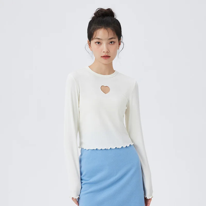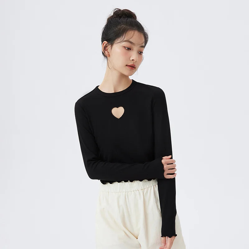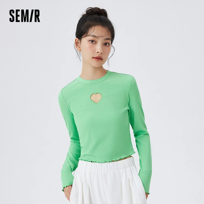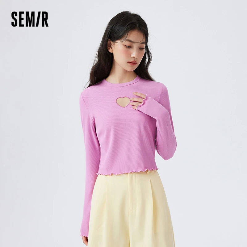 Semir T Shirt Women Knitting Bottom T Shirt Comfortable Underwear Home Pajamas Love Hollow-Out Long Sleeve Top